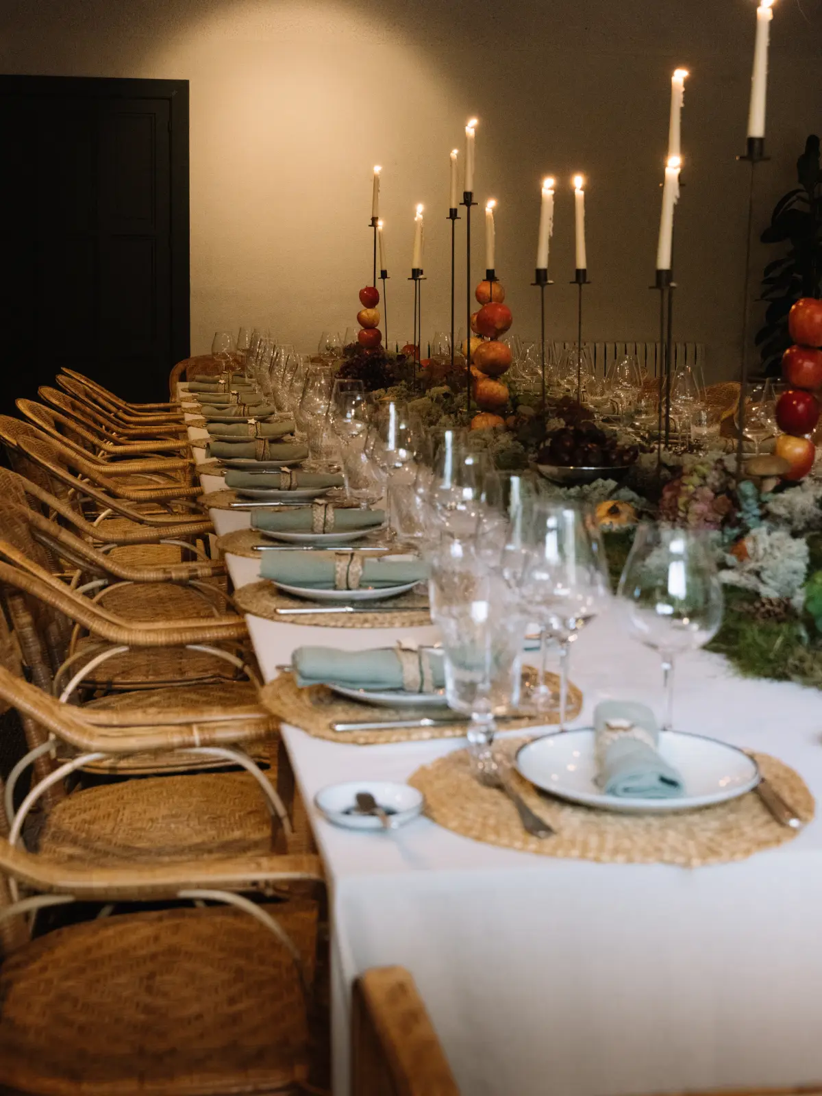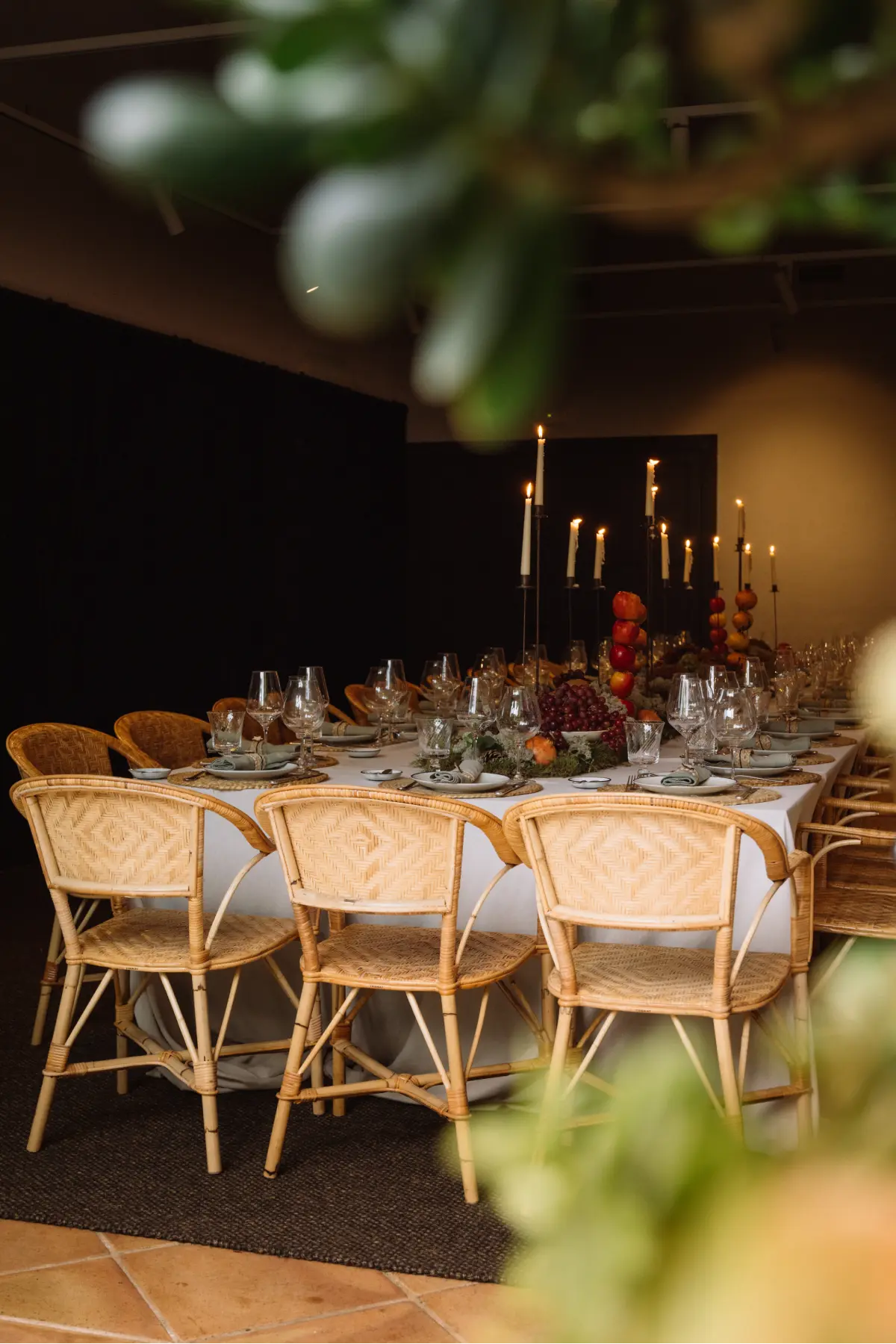 Eine Lounge mit gewölbten Decken und großen Fenstern, die auf die mit Glyzinien bewachsene Terrasse führen. Hell und gemütlich eignet sie sich ideal für Besprechungen, Konferenzen oder kleinere Feiern und bietet alle notwendigen technischen Einrichtungen sowie höchsten Komfort.