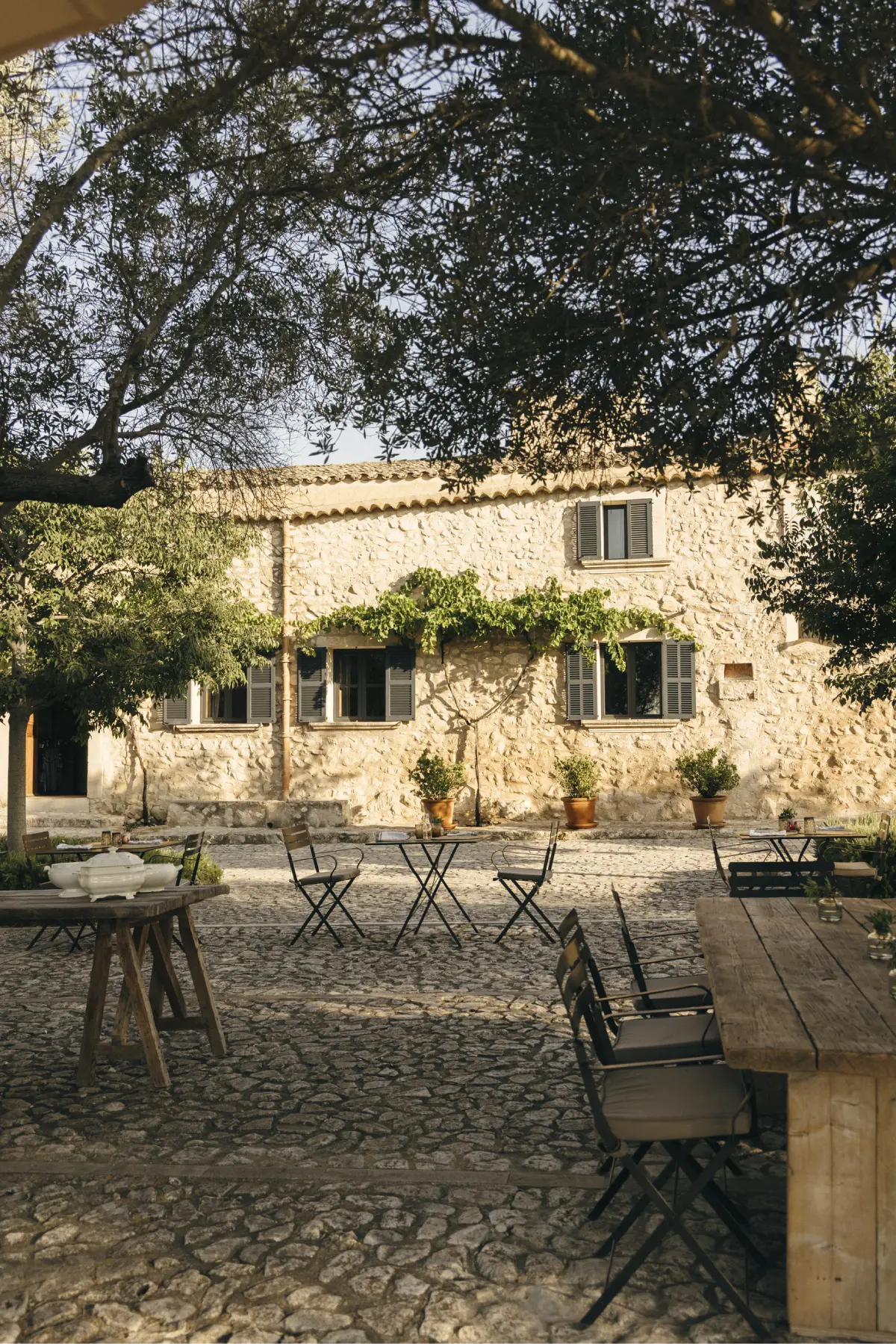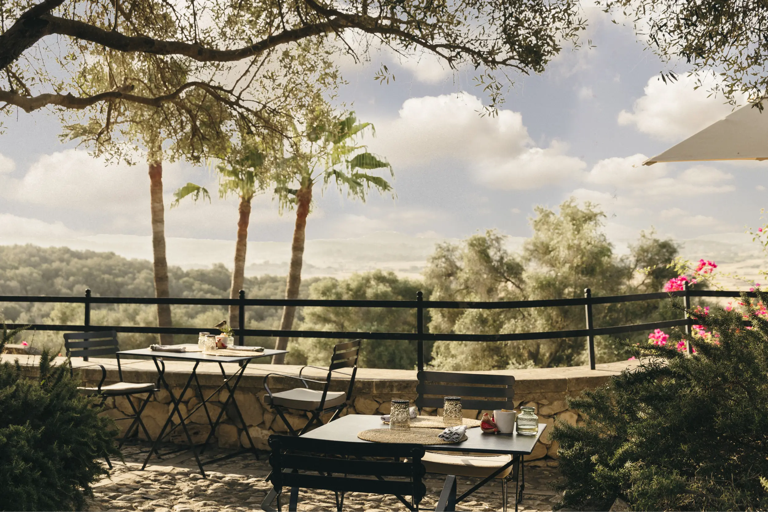 Set against the backdrop of a Mallorcan estate and surrounded by olive trees and lavender in bloom, this terrace overlooks the landscape of the Pla de Mallorca. A serene, Mediterranean-style space, ideal for al fresco dining or a toast at sunset.