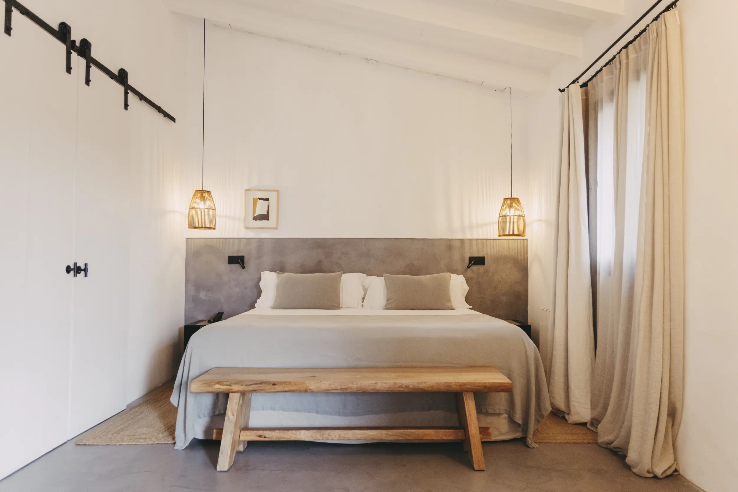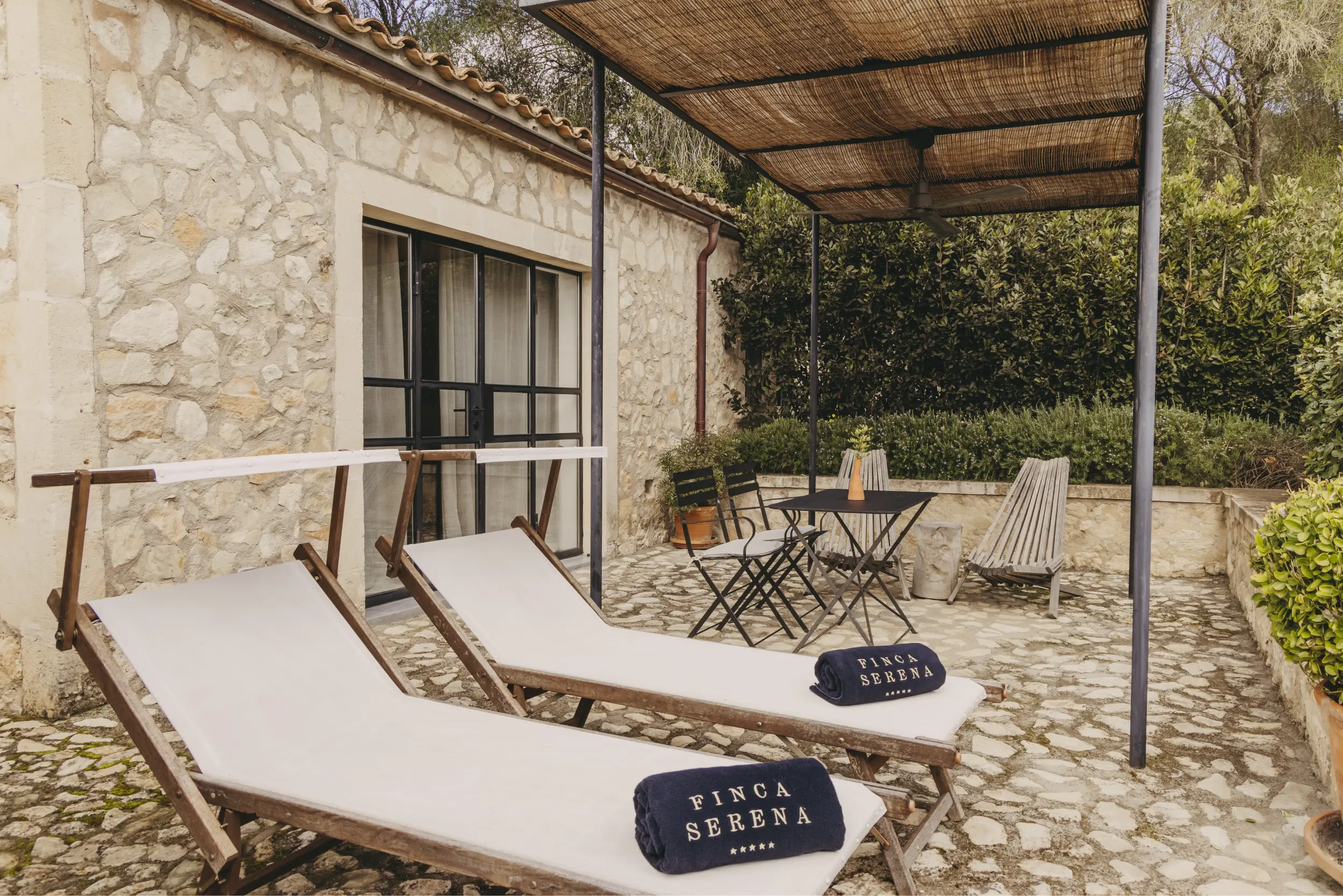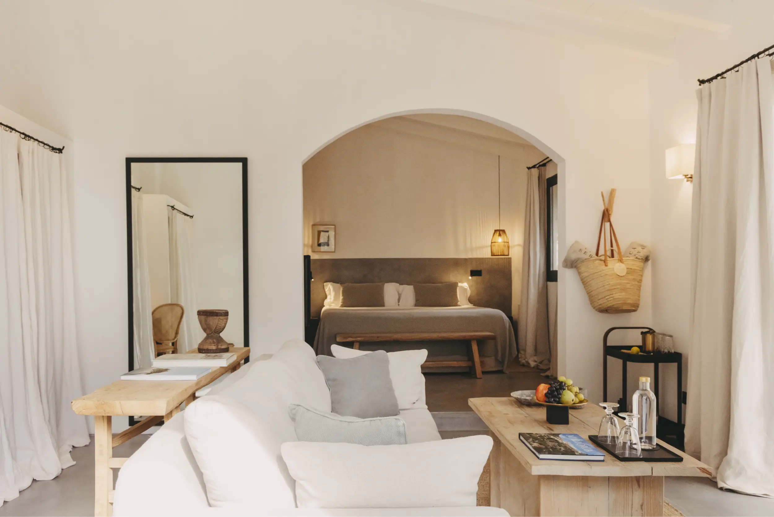 Located in the main farmhouse, these spacious rooms offer a cosy and comfortable retreat. A wooden desk invites you to settle in, whilst a cosy sitting area with a sofa and table creates the perfect spot for reading or relaxing. Surrounded by peaceful countryside, the serene atmosphere provides a tranquil space to rest and enjoy the beauty of the surroundings.