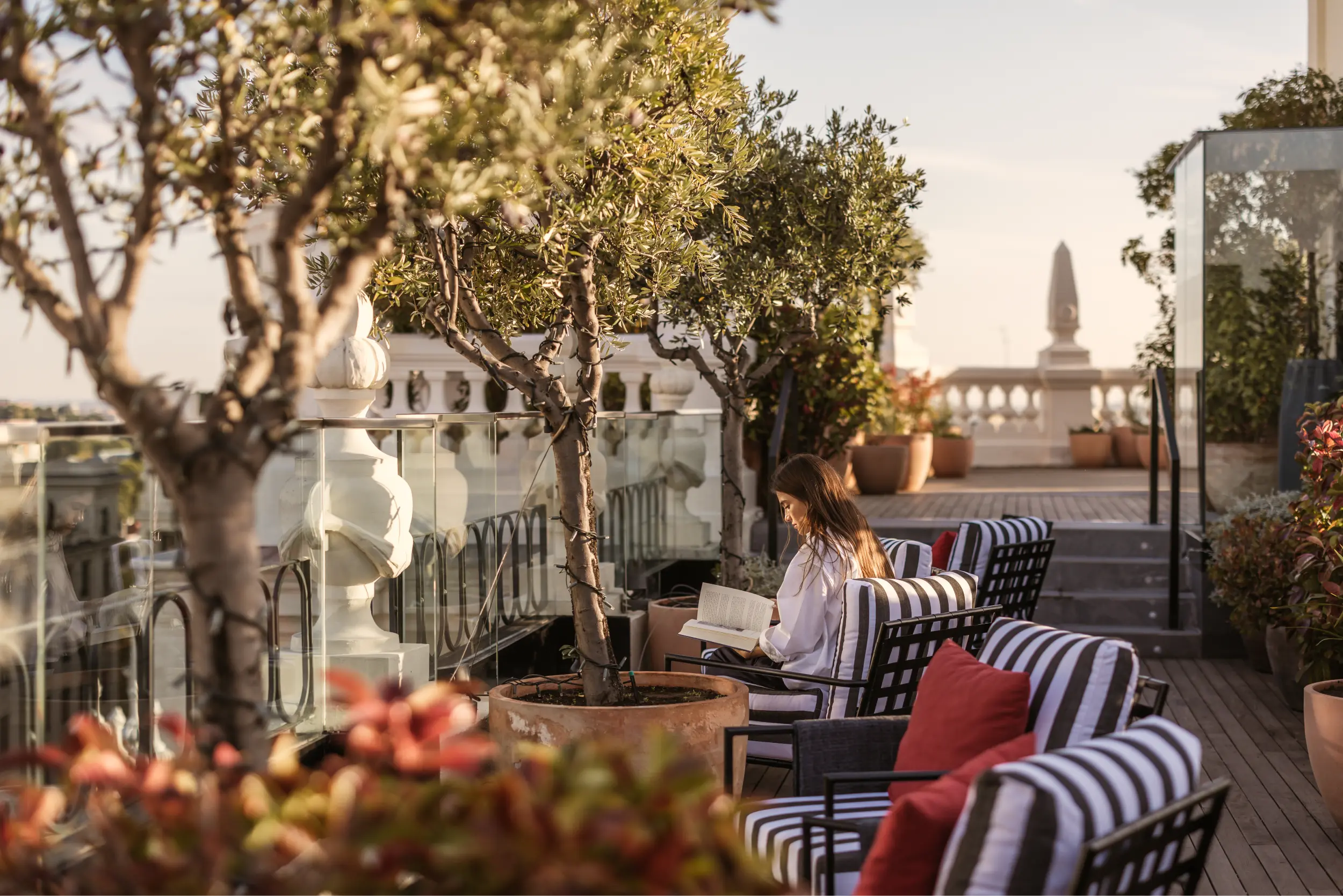 A fully refurbished iconic building. The Principal Madrid is the perfect luxury destination, combining urban leisure with the intimacy of its garden and terraces, set against the Madrid skyline.