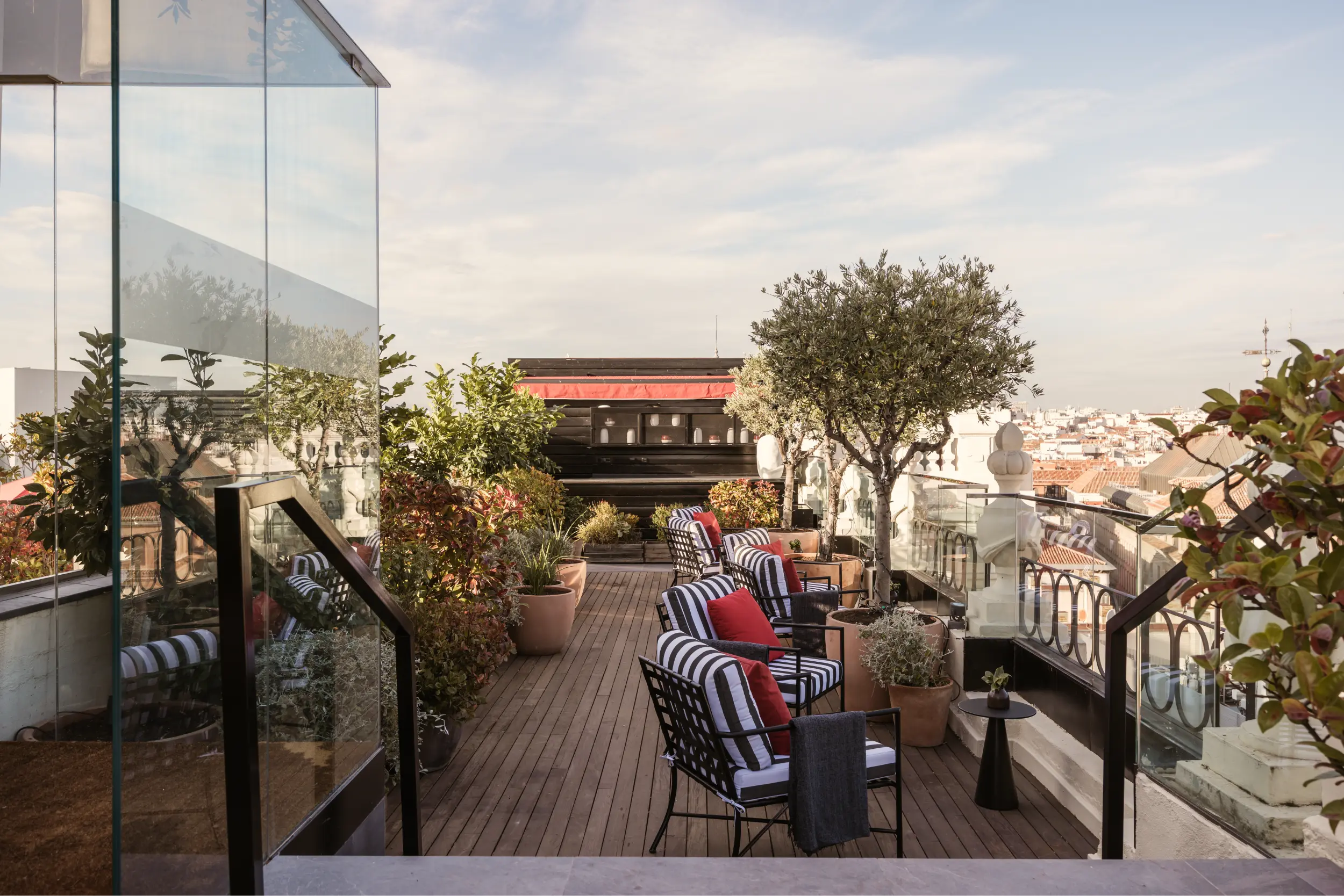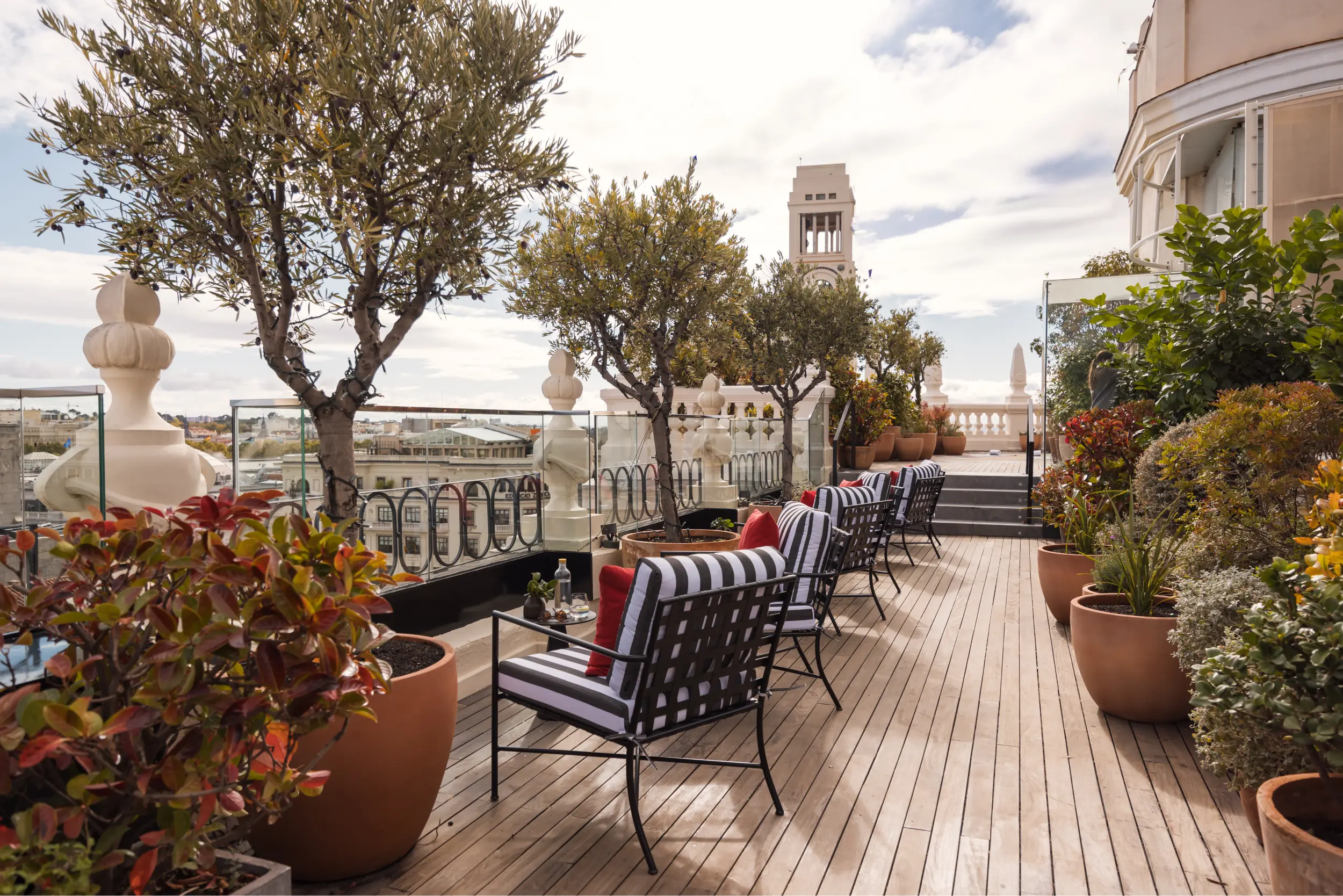 An exclusive rooftop with 360° views of Madrid. An open-air space that invites you to enjoy the city from above, bathed in light and with the horizon as your backdrop. Its spaciousness and outdoor setting make it the ideal venue for social gatherings, celebrations and events designed to impress, with Madrid’s skyline as the backdrop.