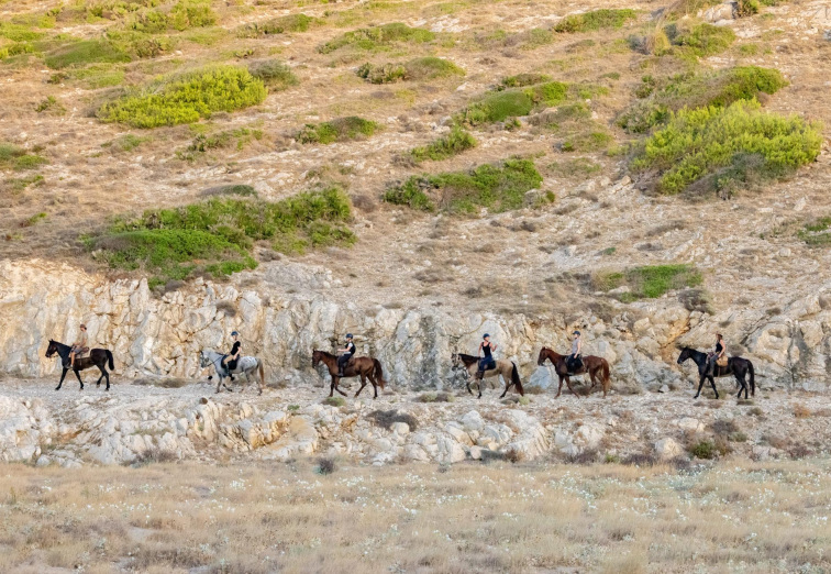Esta ruta te lleva hasta una de las calas más famosas de la costa mallorquina, Cala Ratjada, a través de una bonita zona de montañas. Anímate a galopar sobre las olas y no te olvides de llevar tu cámara de fotos para captar la bonita estampa del paseo a caballo con la playa de fondo.