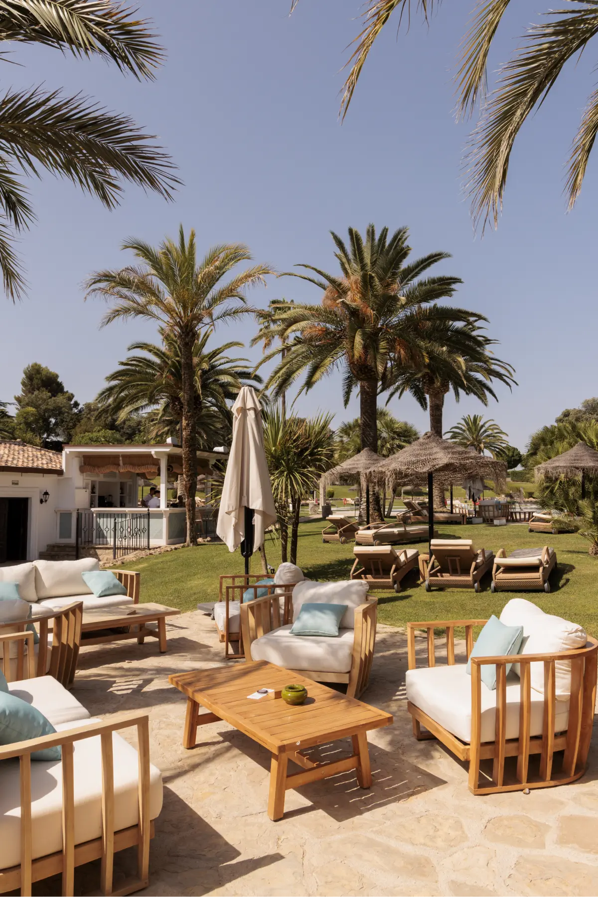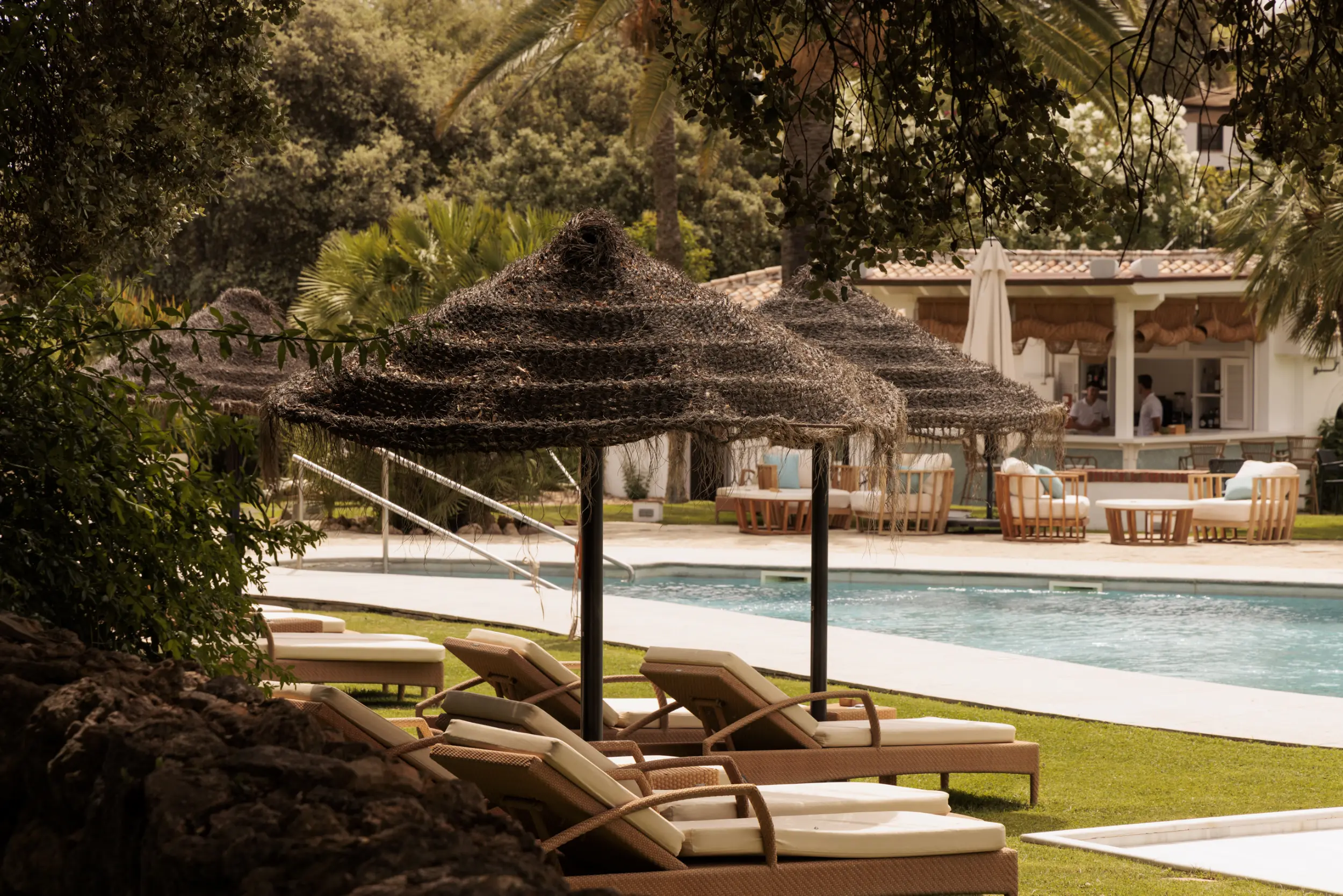 Rodeado de aromas mediterráneos y con la silueta de la sierra como telón de fondo, el Jardín Piscina es un espacio luminoso y relajado, ideal para cócteles, recepciones o celebraciones al aire libre. La luz dorada y la proximidad de la piscina crean un marco elegante y natural para cada evento.