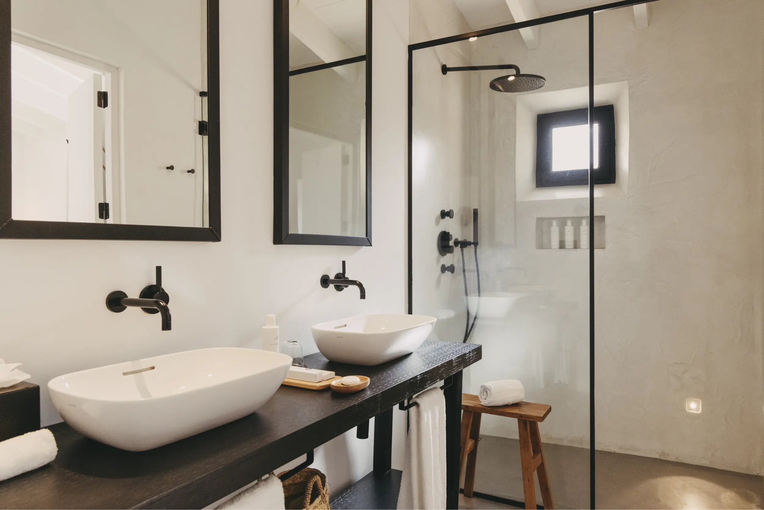Situadas en la masía principal, estas amplias habitaciones ofrecen un refugio acogedor y confortable. Un escritorio de madera invita a instalarse, mientras que una acogedora zona de estar con sofá y mesa crea el rincón perfecto para leer o relajarse. Rodeado de apacibles paisajes, el ambiente sereno ofrece un espacio tranquilo para descansar y disfrutar de la belleza del entorno.