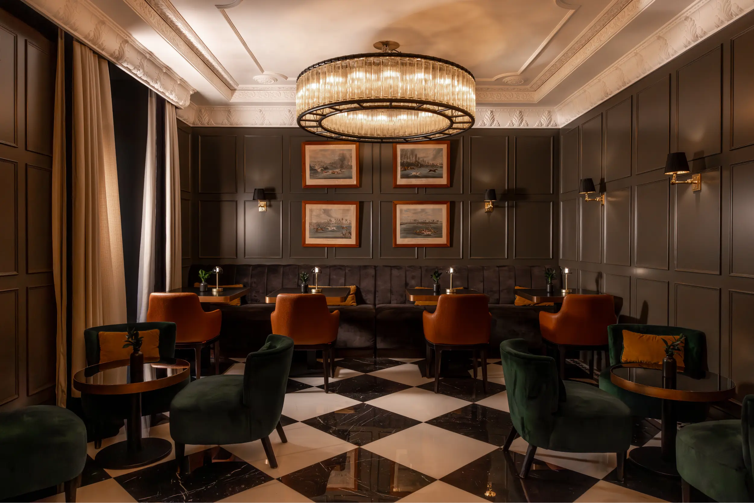 Con una estilo clásico y cuidado, The Bar es un espacio versátil ideal para afterworks, presentaciones informales o reuniones distendidas. La barra de coctelería, los sillones de terciopelo y piel, y los amplios ventanales con vistas a la Calle Claudio Coello crean un ambiente luminoso, acogedor y refinado, perfecto para conversaciones y momentos memorables.