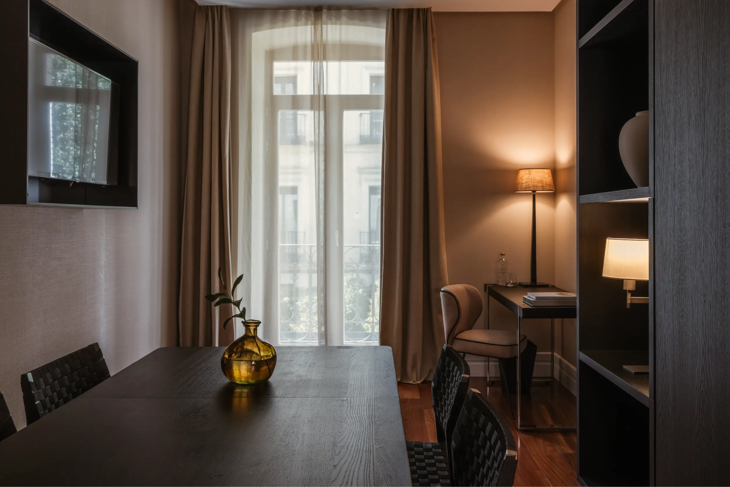 Íntima y elegante, la Sala 001 ofrece un entorno reservado y sofisticado, ideal para reuniones privadas que requieren total discreción. Equipada con tecnología avanzada, baño propio y vistas al jardín, combina confort y exclusividad en un espacio compacto.
